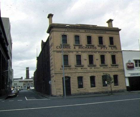 With the renumbering of central Melbourne in the late 1800s number 8 Franklin Street became 79-81 Franklin Street. Sometime after 1896 and Alfred Shaw & Co sold the building and in 1911 it was purchased by Currie & Richards, ironmongers. In the early 1980s it was converted into offices. The building still stands and is on the Victorian Heritage Register (see H0440 in the Heritage Council Online Database). |