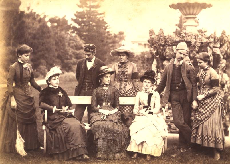 1884 In 1884 Hannah died at Hiawatha, the new family home just completed at William Street. The photo at the right was taken in the front garden not too long afterwards judging by the black armbands. As far as I can work out it shows Lavina, Amelia, Alfred (Jnr), (unknown), Effie, (unknown), Ernest and Eva.